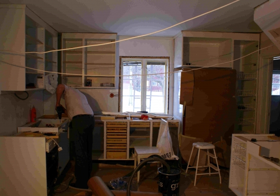 Hela köket vi satt in är begagnat men vi har lackat om luckorna och restaurerat en del annat. Vitvarorna som följde med fungerade i stort men har fått en genomgång av elektroservice-killar i Eskilstuna.